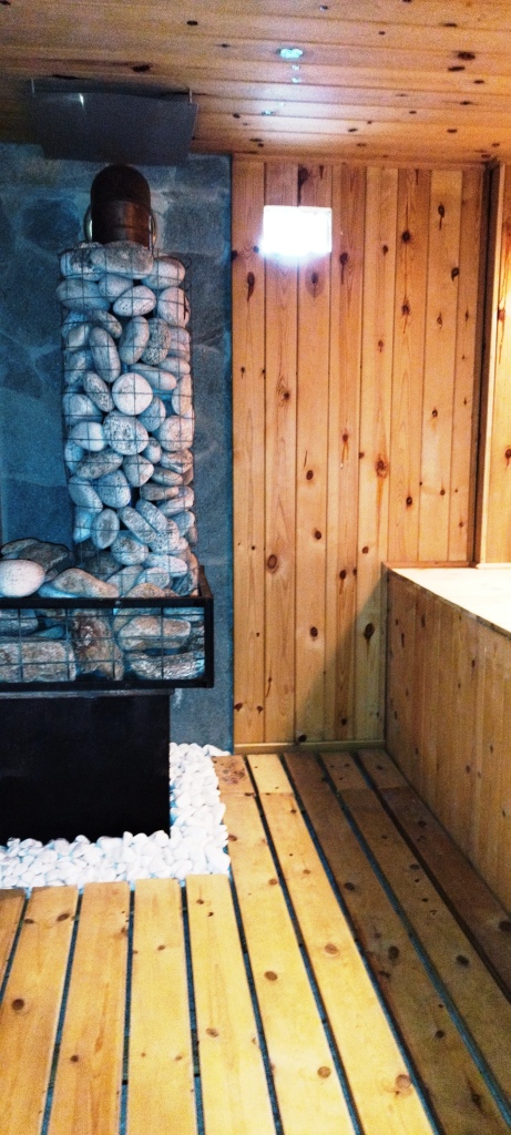 Traditional russian sauna located on the ground-floor where a large amount of hot steam is created with the help of water and hot air. Sauna is heated using firewood placed in the stove and very beneficial for the body and health. To create the sauna were used only natural materials: wood and stones. There are no artificial materials in it!